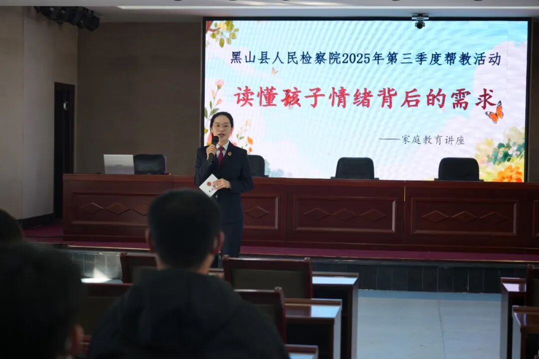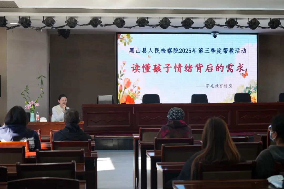 当前,家庭教育缺位或教育方式不当已成为未成年人涉罪的重要诱因之一。为深入践行未成年人司法保护理念,切实发挥家庭在未成年人成长中的不可替代作用,近日,黑山县人民检察院精心组织开展以“读懂孩子情绪背后的需求”为主题的帮扶教育活动,此次活动将帮扶重心由涉罪未成人转向家长,并特邀专业心理咨询师参与,帮助缓解亲子沟通难题,改善亲子关系,为涉罪未成年人回归学校、融入社会筑牢稳固的家庭支撑。