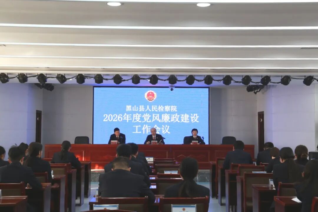 为深入贯彻落实中央、省、市、县纪委全会精神和上级检察机关党风廉政建设工作各项部署,压紧压实全面从严管党治检政治责任,筑牢检察队伍廉洁自律思想防线,2月11日,黑山县人民检察院召开2026年度党风廉政建设工作会议。院党组书记、检察长郭宝广出席会议并讲话,黑山县纪委监委第一派驻纪检监察组组长高俊新列席督导,院党组副书记、分管日常工作的副检察长杨红主持会议,全院干警、聘用制书记员参会。