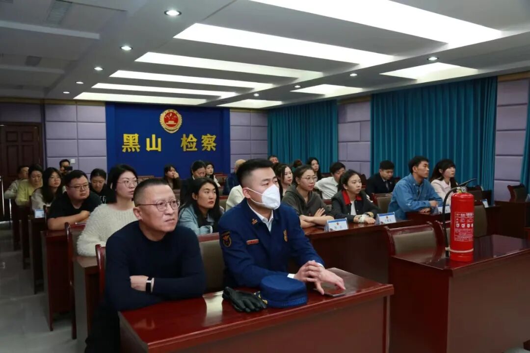 为落实黑山全县安全稳定工作会议精神,进一步普及消防安全知识,增强消防安全意识,提高干警抵御火灾及应对紧急突发事件的能力。近日,黑山县检察院检察长郭宝广特邀黑山县消防救援大队副大队长武麟、副站长郭晟冶到院进行消防检查和指导。副站长郭晟冶结合真实火灾典型案例进行授课,多角度、深层次对防灾减灾知识进行讲解,让干警切身感受到了火灾的危害和消防知识学习的重要性。